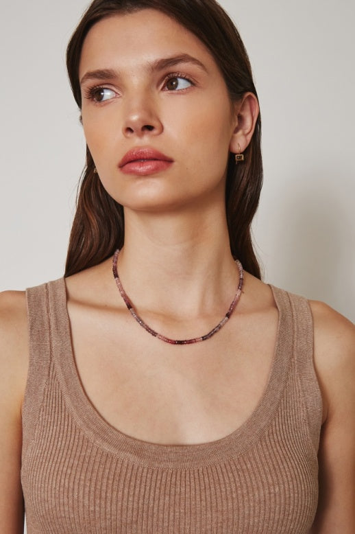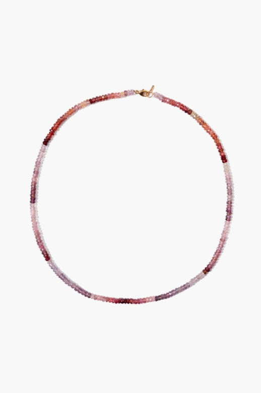 14k gold necklace featuring multi spinel. 16 1/2in. length.