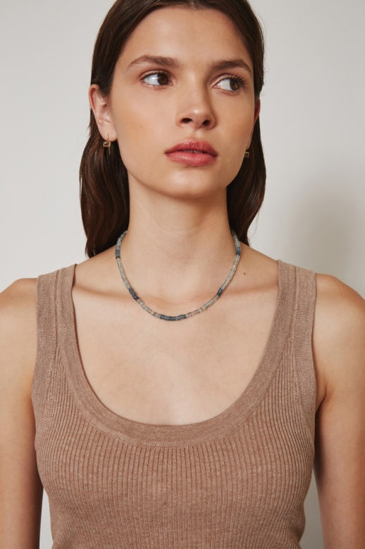 14k gold necklace featuring copper aquamarine. 16 1/2in. length.