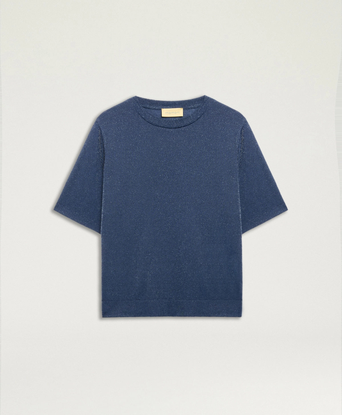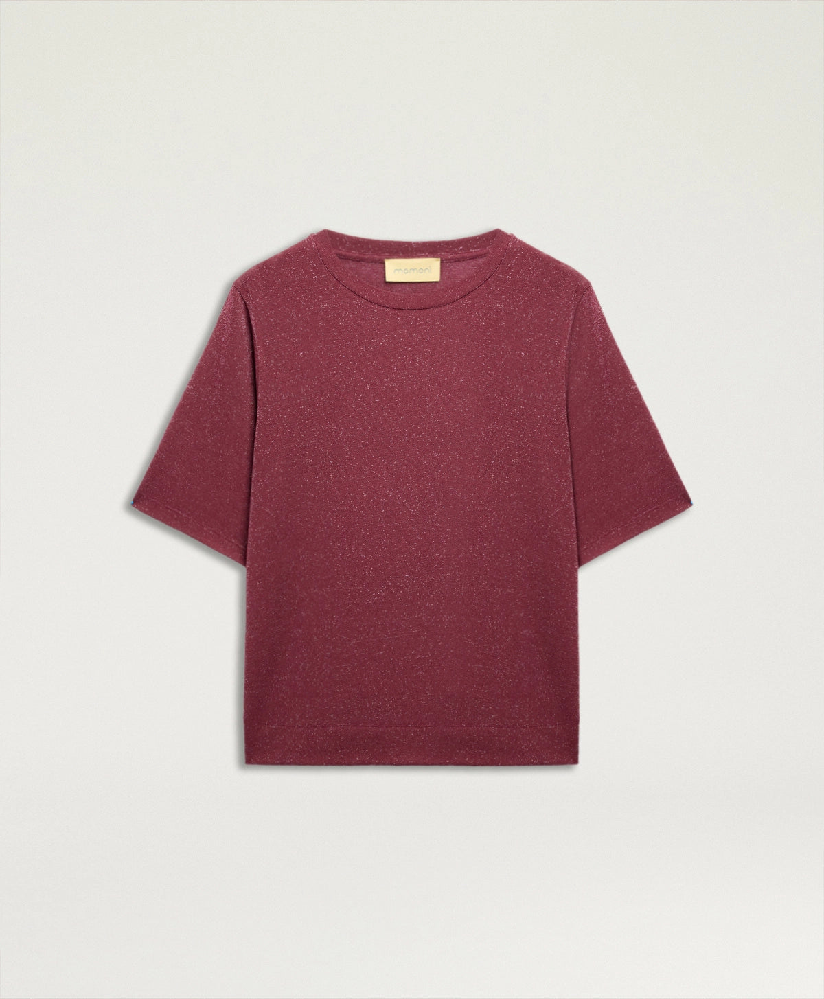 Carry-over short sleeve T-shirt in solid colour jersey with lurex. Relaxed fit, round neck and small side slits.